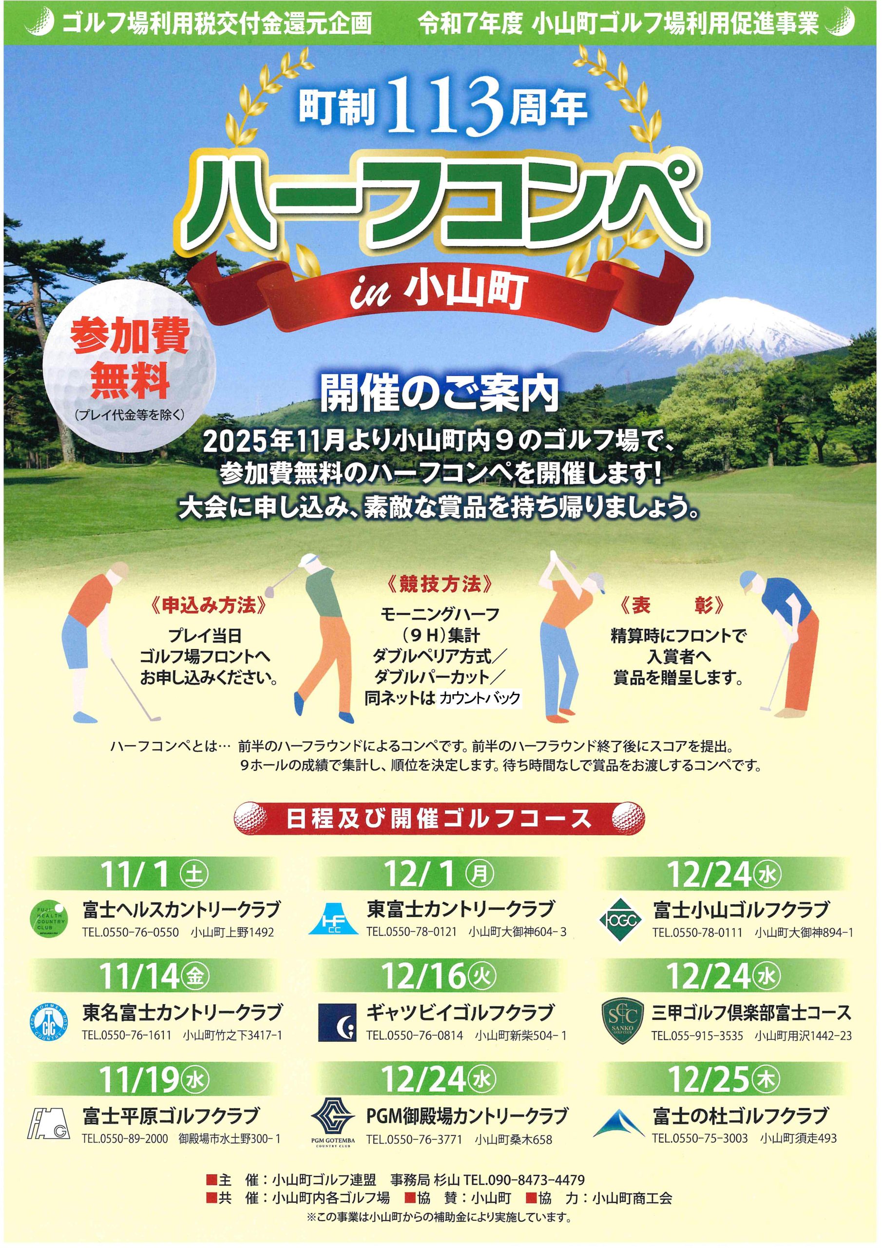 12月16日(火) 静岡県小山町主催の「町制113年周年 ハーフコンペ IN小山町」参加者募集!