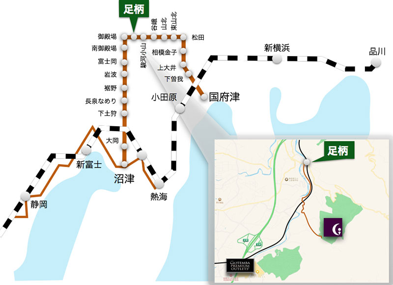 クラブバスはJR御殿場線「足柄駅」とさせていただきます。