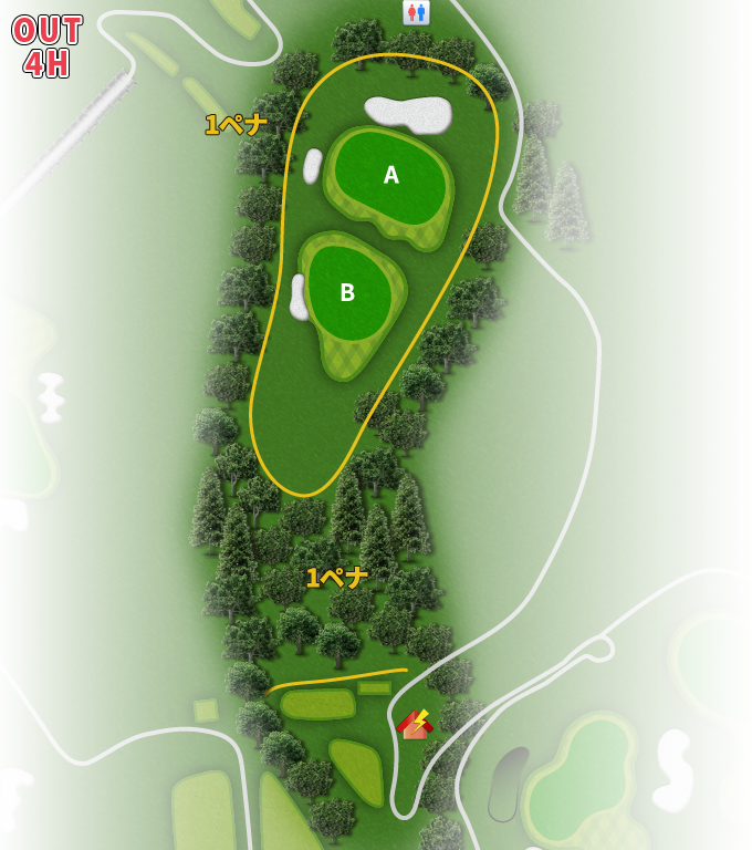 グリーンとグリーンの間の傾斜は見た目以上にある。