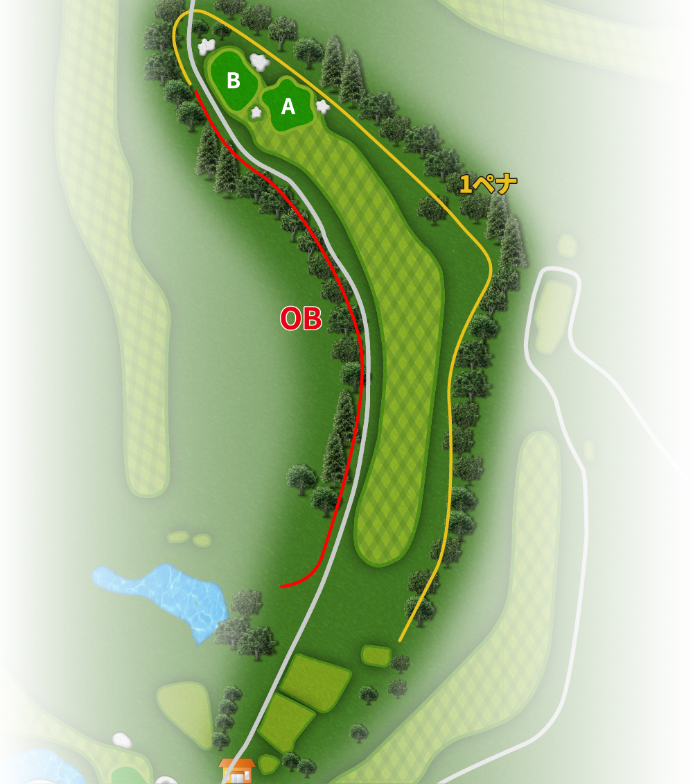右サイドの1ペナはグリーンまで浅い。